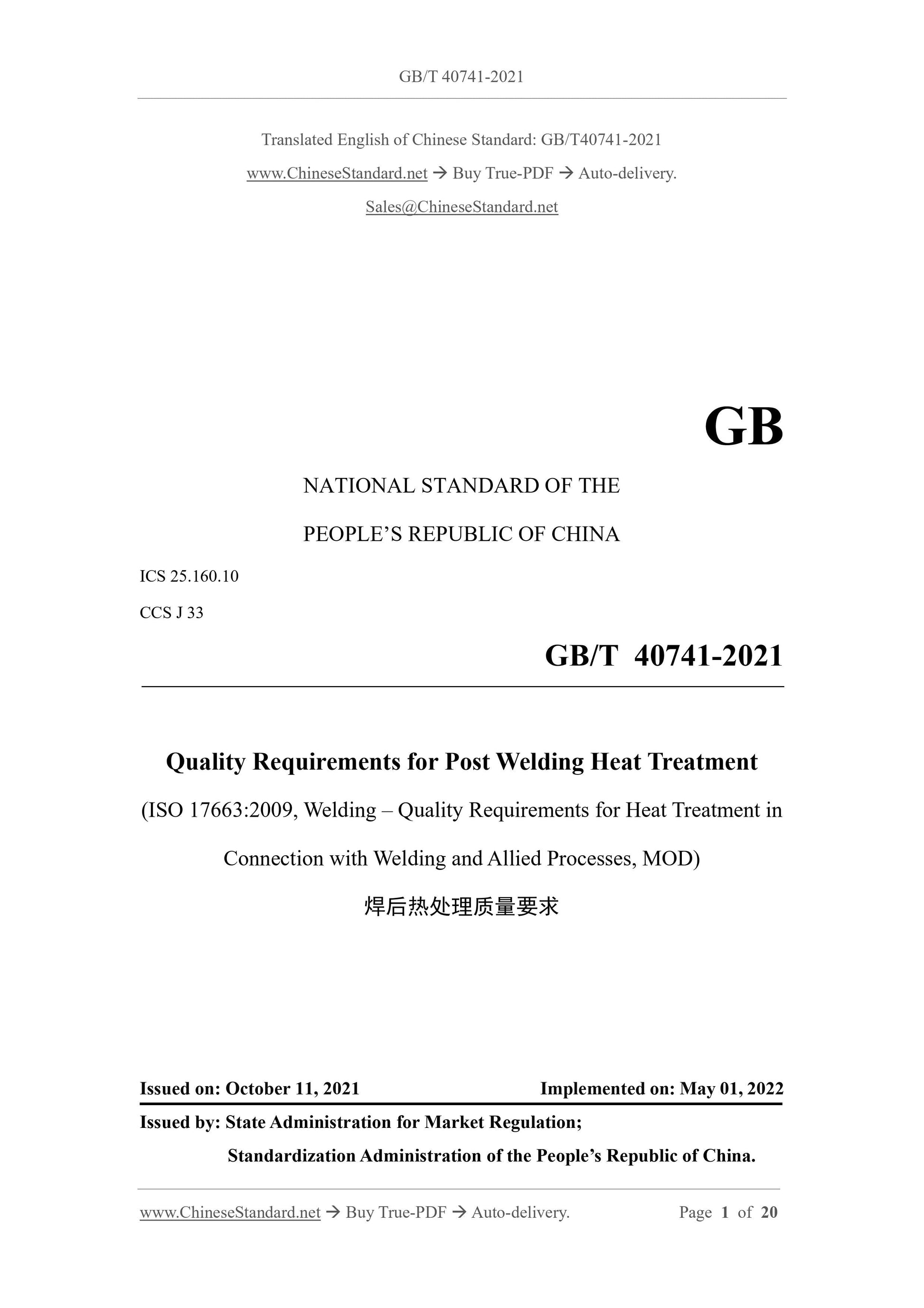 GB/T 40741-2021: Quality requirements for post welding heat treatment
